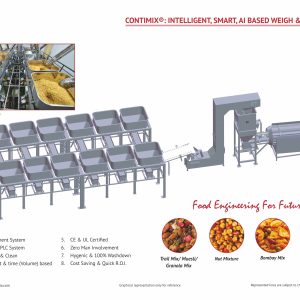 Conti-Mix is a smart system that helps to make predetermined food mixes for various types. It works on the principle of programmable logics, which helps to make recipes by discharging required ingredients/products in a specific ratio. This ratio can be by weight or volume.