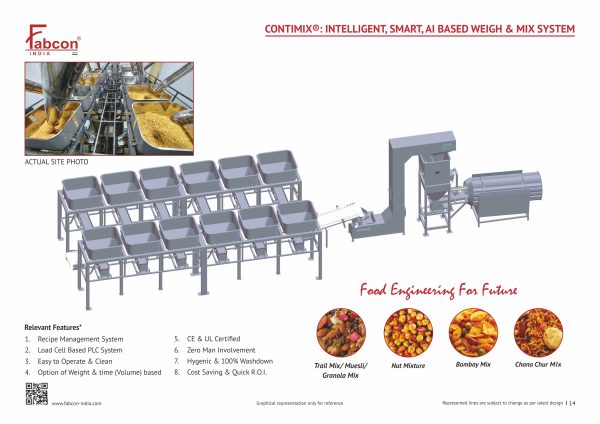 Fabcon India machinery integrates the best-customised solutions for creating mixes. The process is carried out by technologically advanced, automated, and quality material snack machinery. A brief description of the machinery used in Conti-Mix is indicated below: